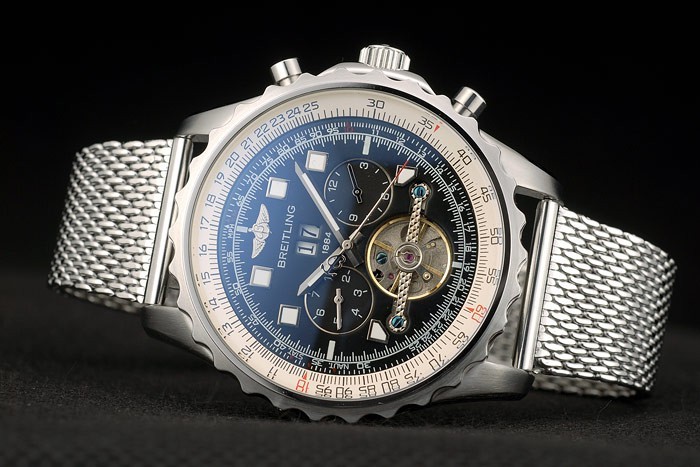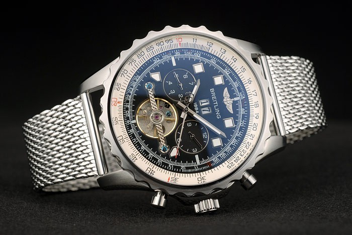 Este reloj tiene el vidrio AR. El color de la cara aparecerá diferentes colores dependiendo de cómo la luz cae sobre itBack: Acero inoxidable pulido complemento de vuelta con Breitling Transocean engravings