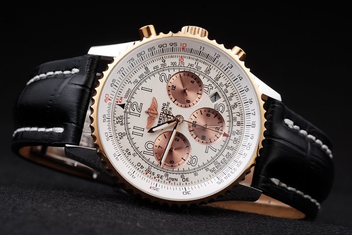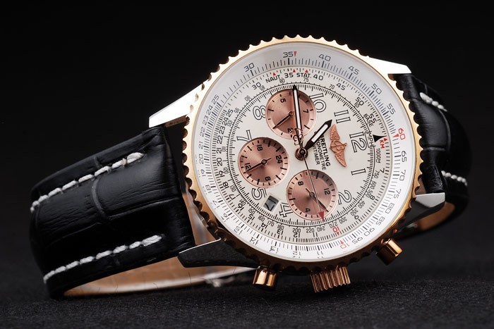 Bracelet de acero inoxidable: correa de piel de cocodrilo Negro con la patente costuras de color blanco y el calor en relieve grabados Breitling y acero inoxidable grabado doblar por la broche con el logotipo de Breitling en top