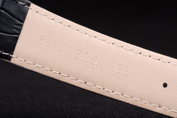 Bracelet de acero inoxidable: correa de piel de cocodrilo Negro con relieve de calor Sello Patek Philippe y pulido de gancho de acero inoxidable hebilla de cierre con Patek Philippe engraving