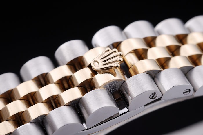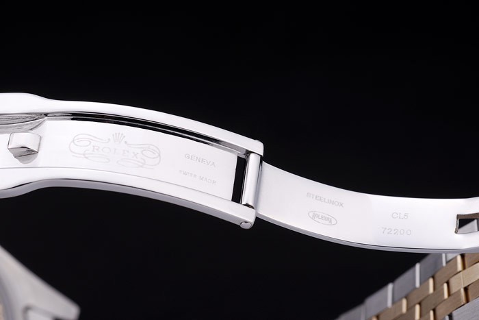 Bracelet de acero inoxidable: acero inoxidable cepillado y oro amarillo acoplamiento de la pulsera con el logo de Rolex oculto Longitud clasp