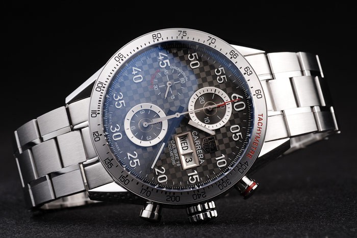 Crown: pulido corona calado de acero inoxidable con logo TAG Heuer más dos coronas adicionales a ambos side