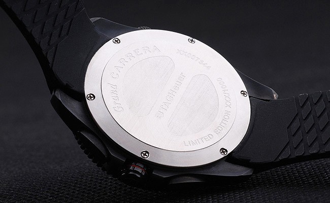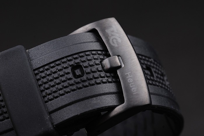 Bracelet de acero inoxidable: textura correa de caucho negro con relieve y grabado de calor gancho sello Tag Heuer clasp