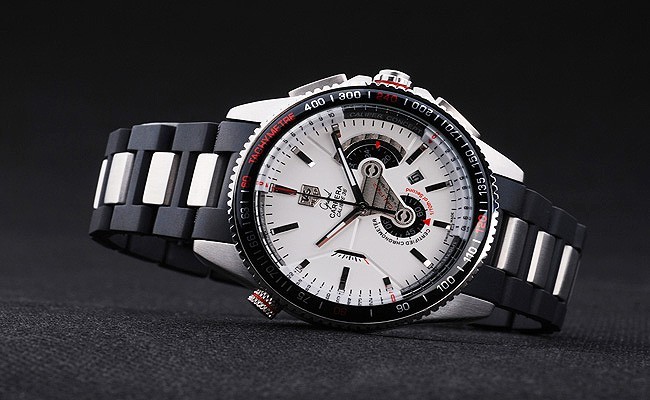 Crown: pulido corona calado de acero inoxidable con logo TAG Heuer más dos coronas adicionales a cada lado y una en el Espesor superior opuesta corner