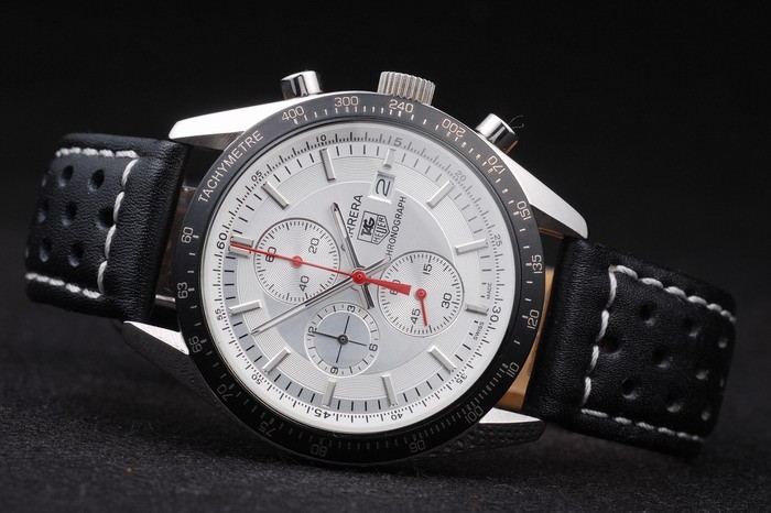 Bracelet de acero inoxidable: correa de cuero negro con textura con la marca en relieve de calor y la Fórmula 1 Tag Heuer grabado gancho hebilla clasp