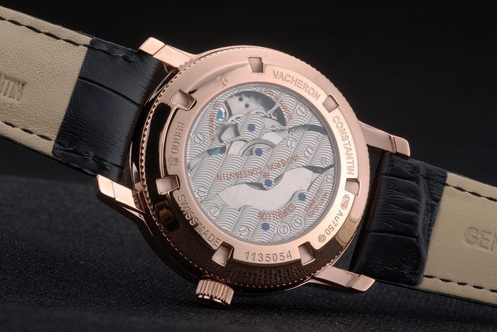 Volver: 18k de oro rosa plateado complemento con grabados Vacheron Constantin y mecánicos transparentes revelan centro